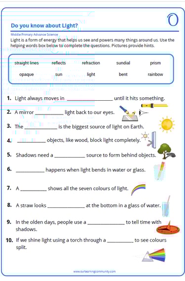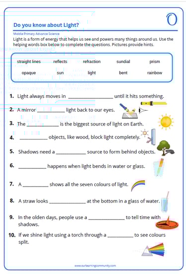 Science worksheets for Middle Primary students build confidence through fun, guided practice, helping children feel prepared before moving on to the next stages of learning.