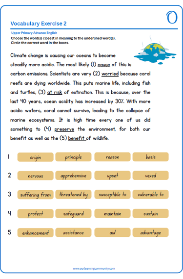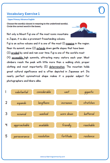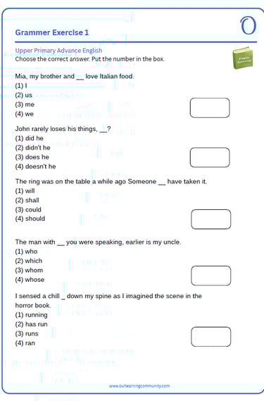 English worksheets for Upper Primary students build confidence through fun, guided practice, helping children feel prepared before moving on to the next stages of learning. This steady development of skills lays a solid foundation for success in the early years of primary school.