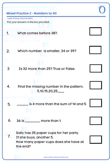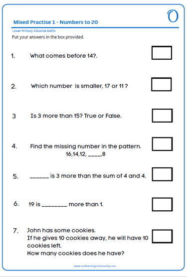 Math worksheets for Lower Primary students build confidence through fun, guided practice, helping children feel prepared before moving on to the next stages of learning. This steady development of skills lays a solid foundation for success in the early years of primary school.